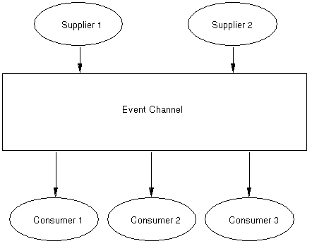 Figure 1. Diagram Showing a Few Suppliers, the Event Channel, and a Few Consumers