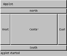 Here is an example of five buttons in an applet laid out using the BorderLayout layout manager: